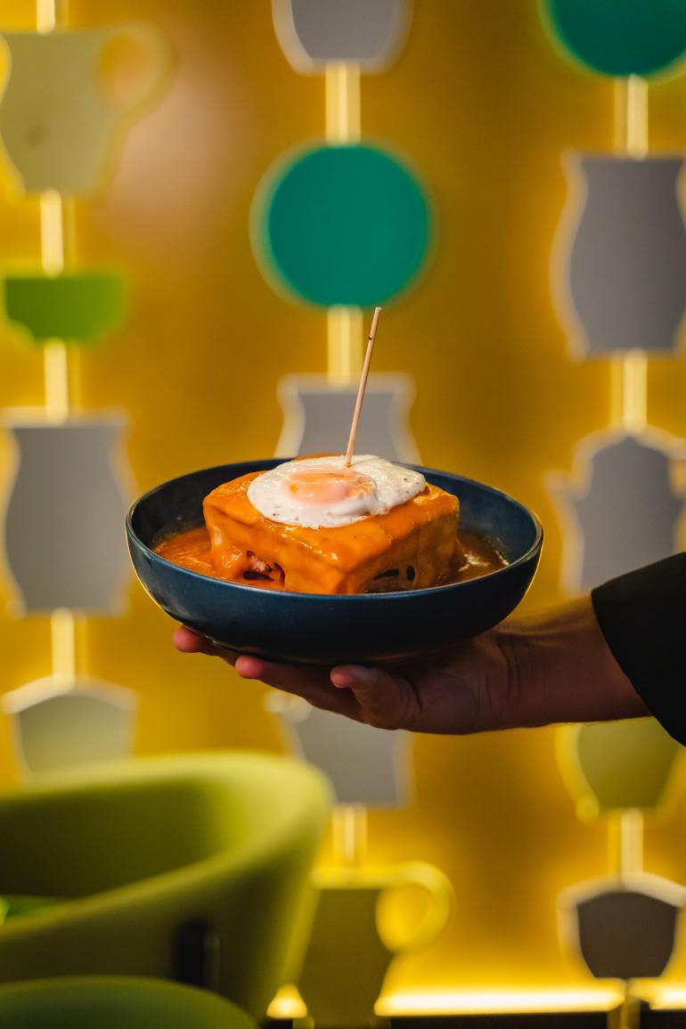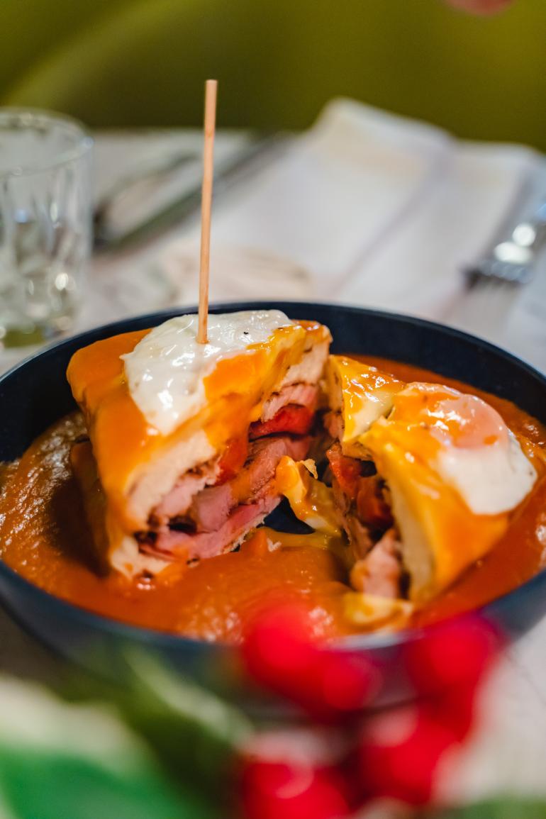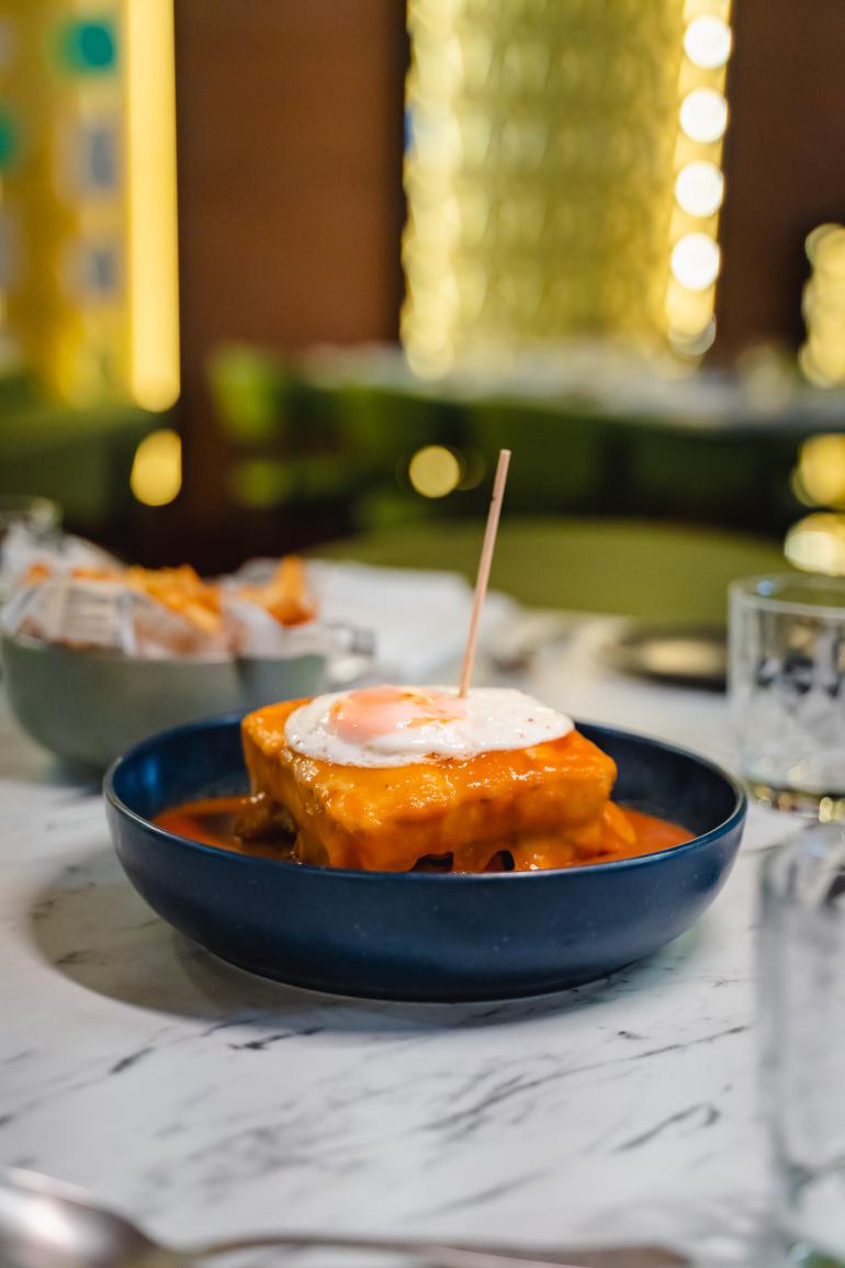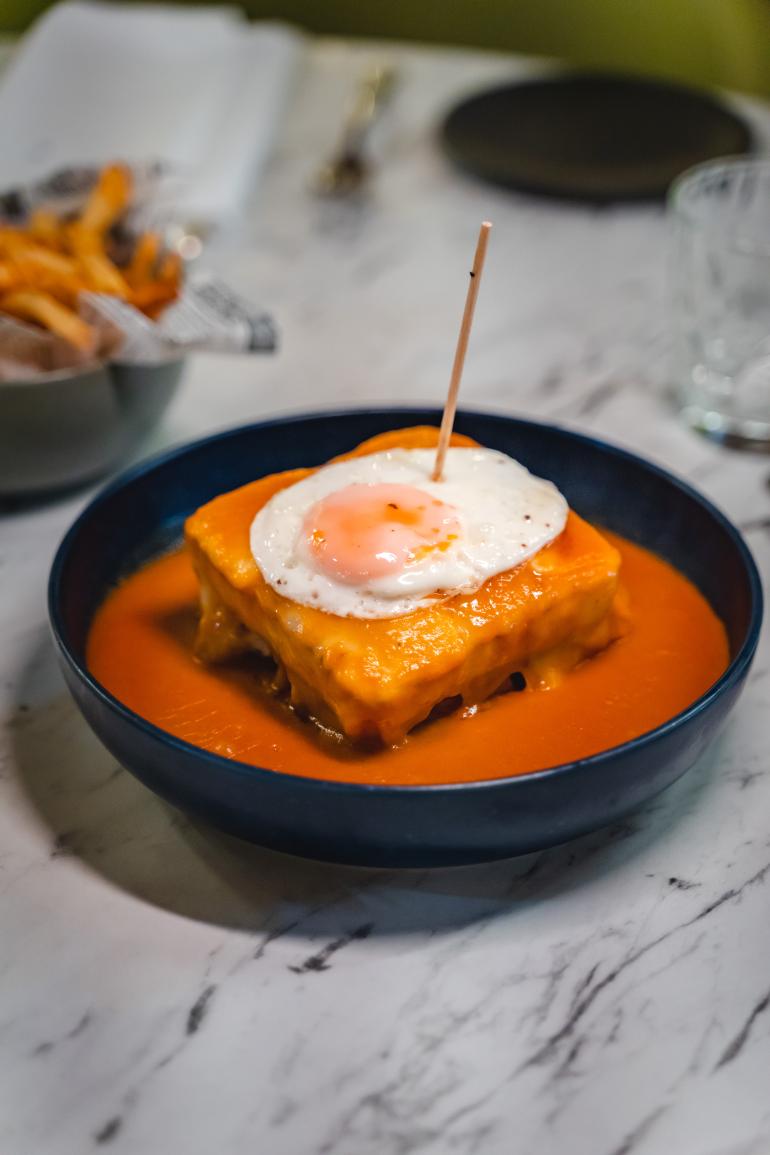 No Restaurante Olaria, preparamos a mais autêntica e deliciosa francesinha da cidade de Aveiro! Cada camada desta iguaria é uma explosão de sabor, desde o pão macio até à carne suculenta e o molho especial.